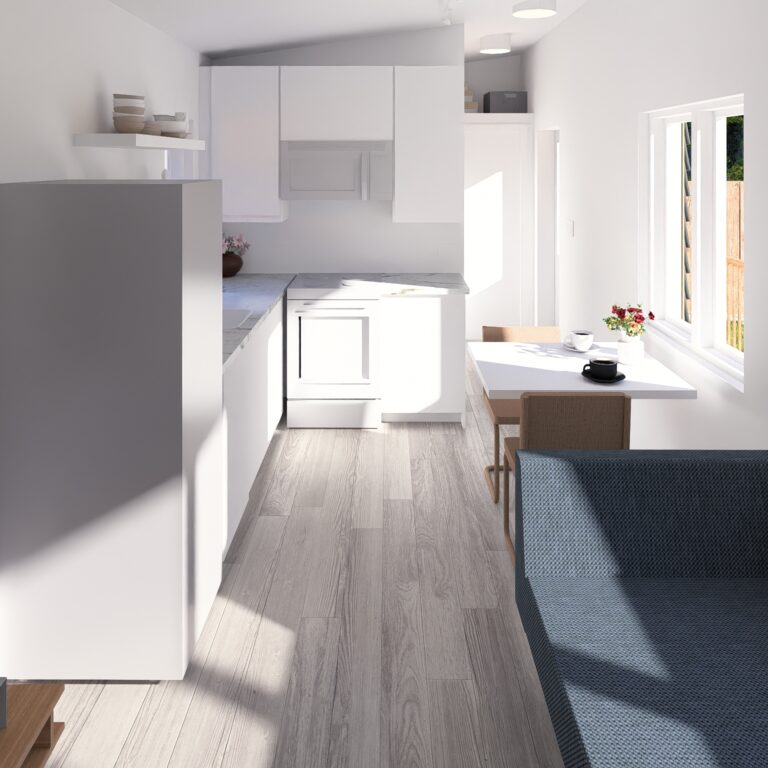 Habitat Tiny Homes offer a fully contained living space with a kitchen, bathroom, and bedroom. They are constructed with quality and care by trained students students supervised by industry professionals. These homes are legal, code compliant secondary dwellings!